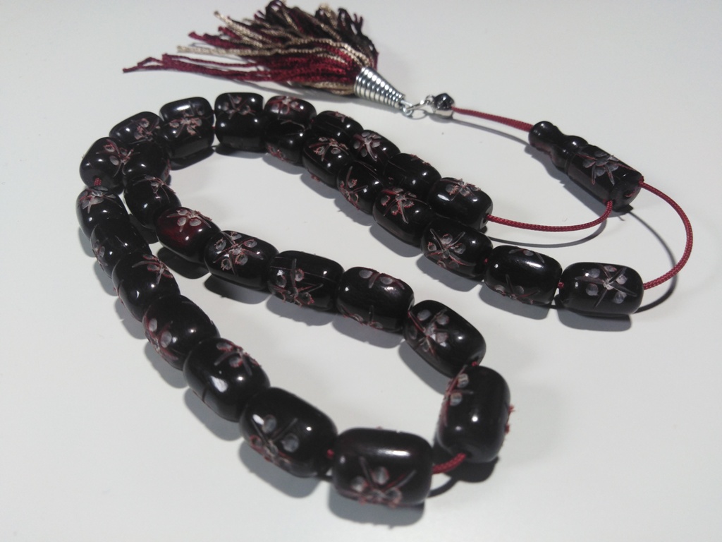 KOMPOLOI HORN CARVED 33 beads , 44 cm , 50 gr , 10-15 mm